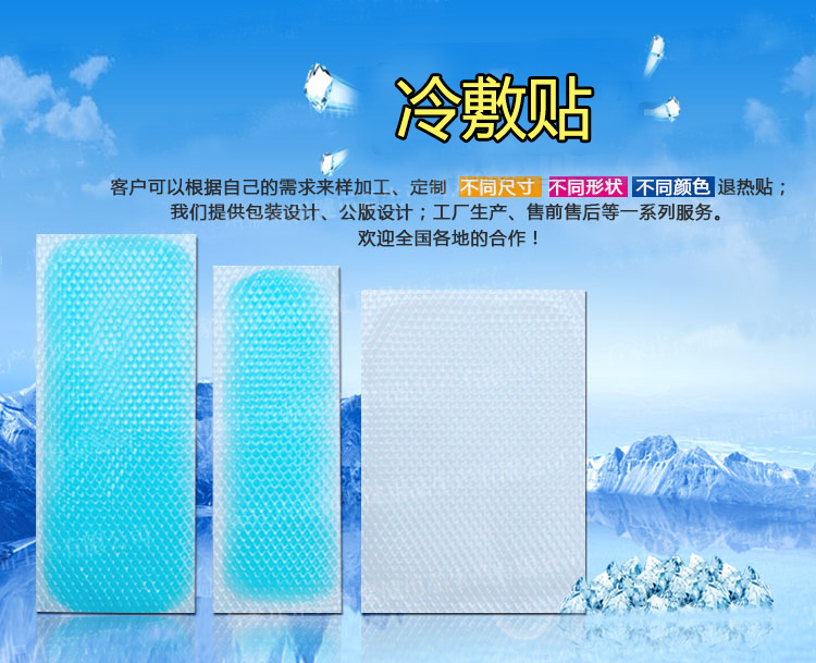 【產(chǎn)品加工】客戶可以根據(jù)自己的需求來樣加工,定制不同尺寸、不同形狀、不同顏色的退熱貼;我們提供包裝設(shè)計(jì)、公版設(shè)計(jì);工廠生產(chǎn)、售前售后等一系列服務(wù)。歡迎全國(guó)各地客戶合作!
